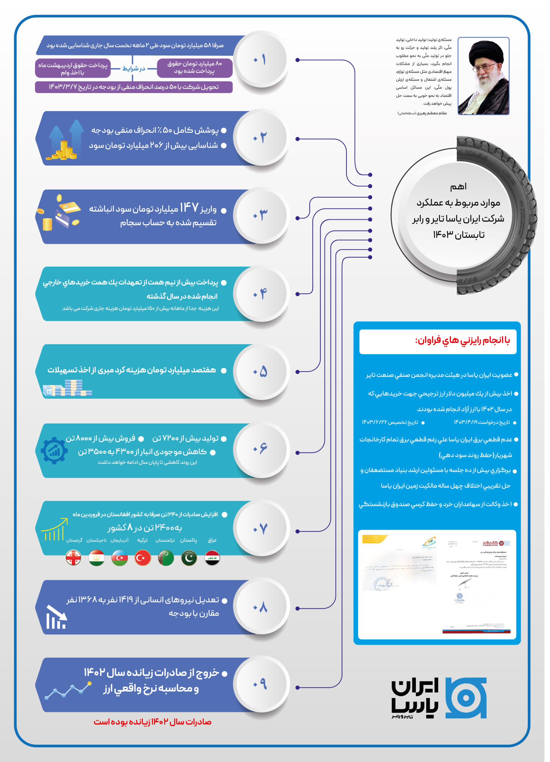 اهم موارد مربوط به عملکرد شرکت ایران یاسا تایر و رابر تابستان ۱۴۰۳