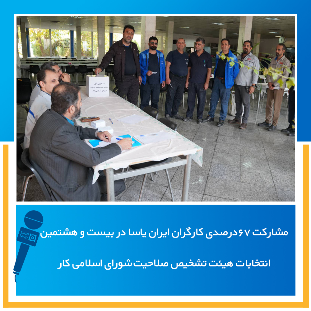 مشارکت ۶۷درصدی کارگران ایران یاسا در بیست و هشتمین انتخابات هیئت تشخیص صلاحیت شورای اسلامی کار