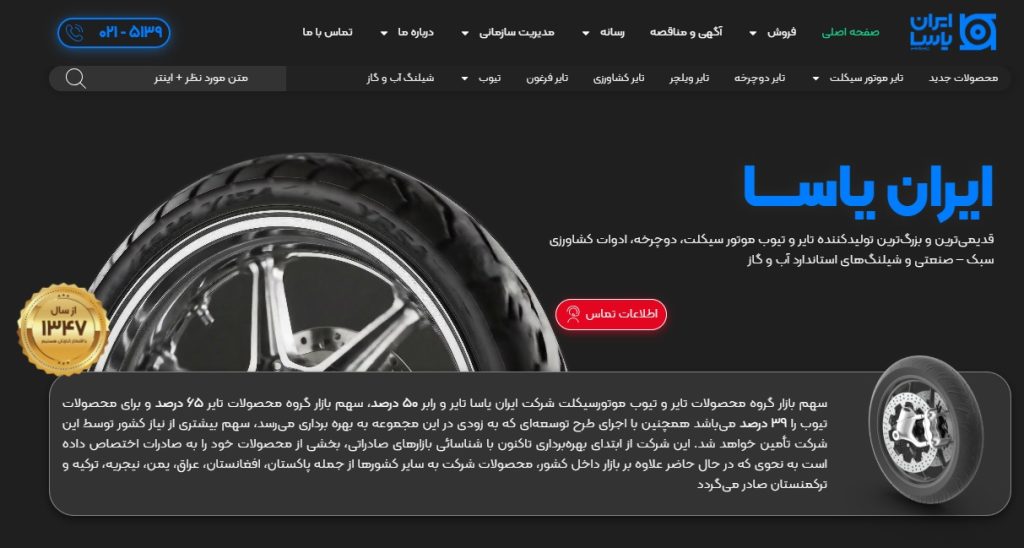 وب سایت جدید شرکت ایران یاسا تایر و رابر، با طراحی مدرن و امکانات پیشرفته رونمایی شد. به گزارش روابط عمومی و امور بین الملل، شرکت ایران یاسا تایر و رابر به تازگی از وب سایت جدید خود به آدرس ( https://iranyasa.ir ) رونمایی کرد. این وب سایت، با طراحی بصری مدرن و امکانات متنوع، […]